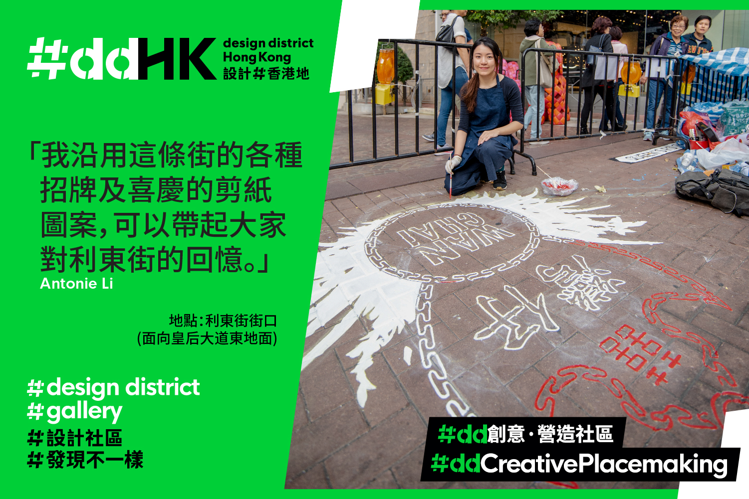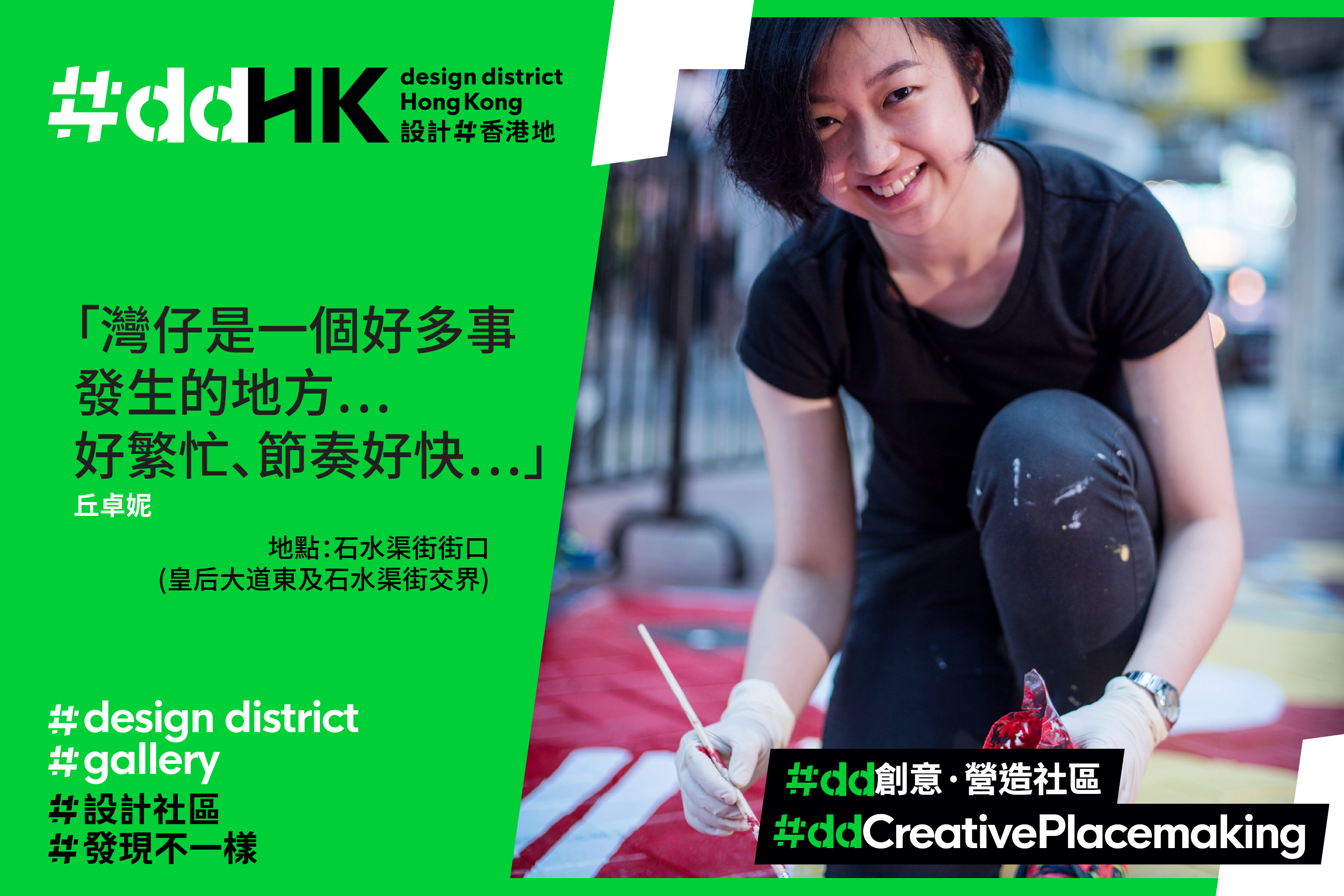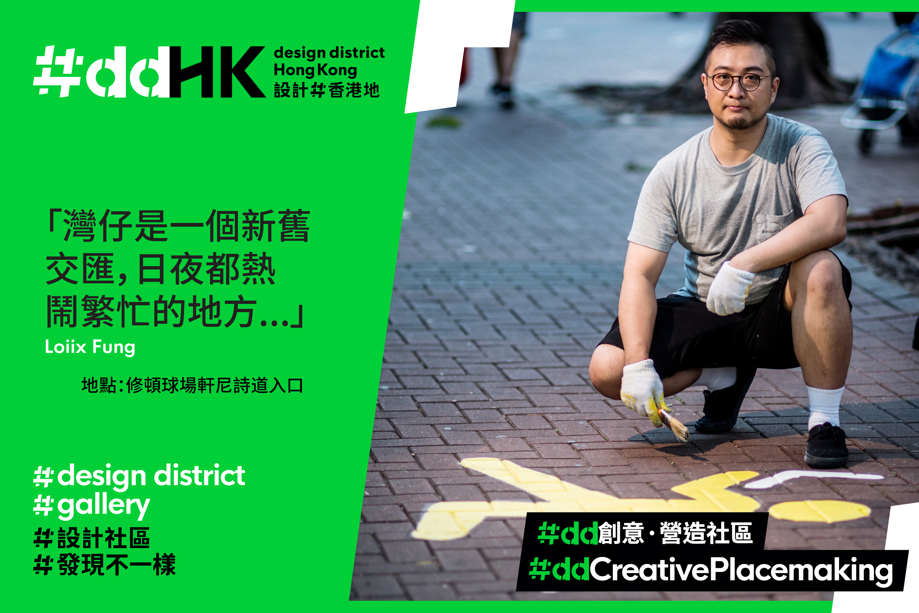 平面设计对生活带来的影响,可能不及建筑设计般显而易见。但只要细心留意,便会发现平面设计在城市中无处不在,存在于每天看到的路牌路标、交通路线图、招牌广告、报章杂志、海报横额等。平面设计不但为我们指引方向,让我们掌握城中发生的大事小事,也塑造出一个地方的个性。为期3年的创意旅游计划「#ddHK 设计#香港地」,由一口设计工作室担任 #dd创意.营造社区的创意伙伴,并邀请了本地创意工作者及平面设计师合作,为湾仔的街头巷尾注入视觉惊喜。